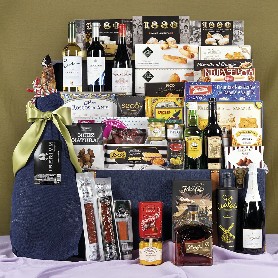 Baúl Celeste es un lote navideño premium que coloca como estrella la paleta gran reserva Iberium IZQUIERDO de 4,5–5 kg, acompañada de salchichón y chorizo ibéricos DEHESA DEL YELTES y sobrasada Montehonfría. Perfecto para los amantes del auténtico sabor ibérico estas fiestas.