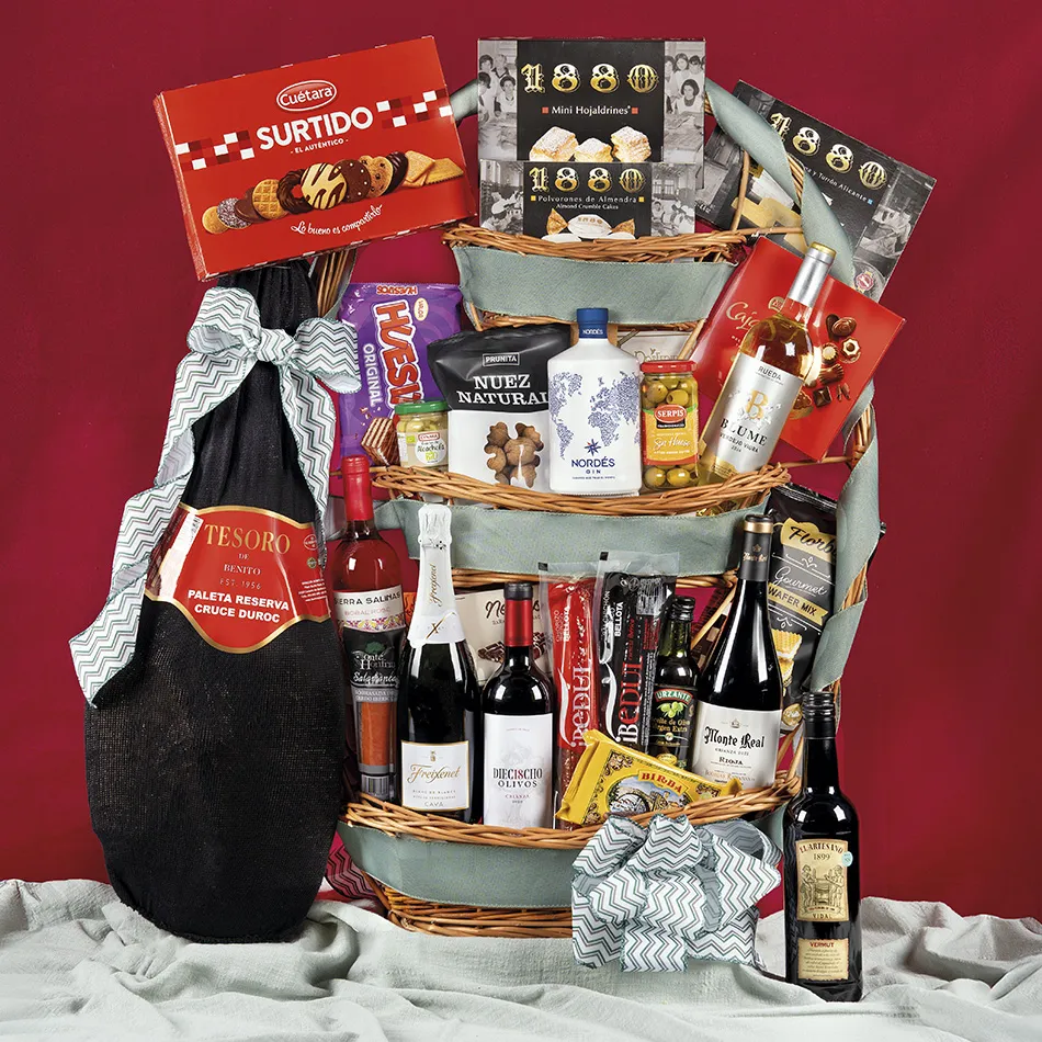 La Cesta Esperanza reúne una selección cuidada de productos ibéricos, vinos de calidad, dulces clásicos y conservas gourmet para ofrecer un obsequio navideño completo y equilibrado. Ideal para regalar con elegancia y buen gusto en estas fiestas, tanto en entornos familiares como empresariales.