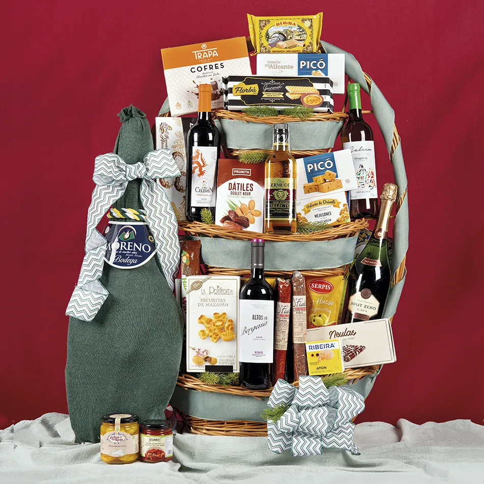 La Cesta Jamón es una propuesta tradicional y generosa, centrada en el jamón serrano de calidad reserva y acompañada por embutidos ibéricos, cava, vinos y una gran variedad de dulces típicos. Ideal para quienes buscan regalar un lote navideño completo, equilibrado y con productos reconocidos por su sabor y presentación.