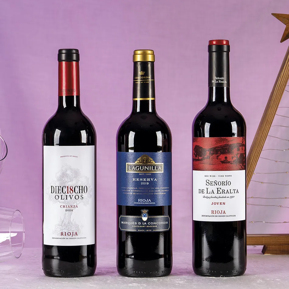 Destaca el Señorío de la Eralta por sus notas de frutos rojos y crianza equilibrada; el Dieciocho Olivos Crianza por sus taninos suaves y toques especiados; y el Lagunilla Reserva por su estructura firmemente redondeada y matices tostados, perfecto para maridar carnes asadas y quesos curados.